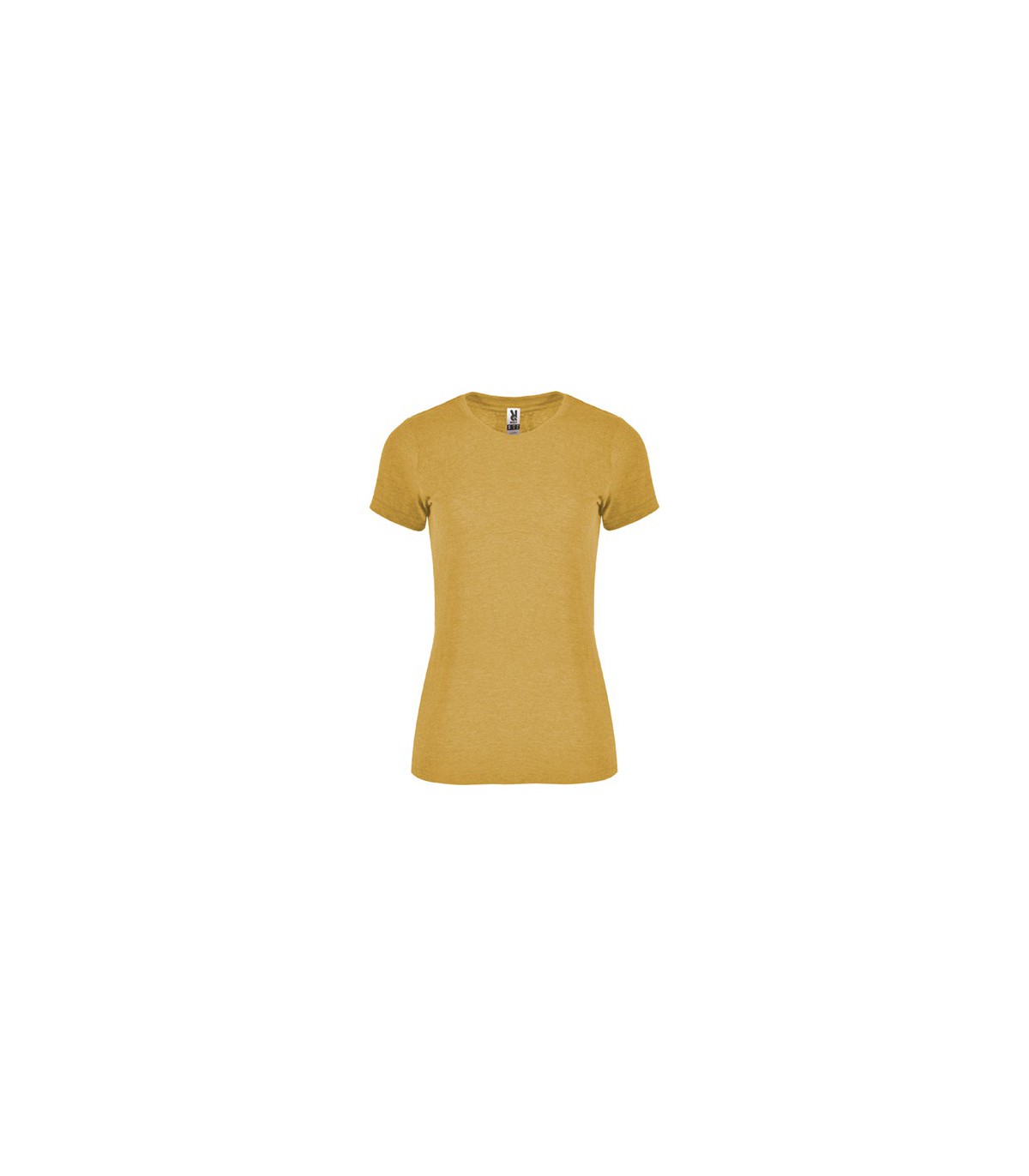 Camiseta de manga corta mujer, en tejido vigoré. Cuello redondo en punto canalé 1x1 con cubrecosturas de refuerzo en su interior.
