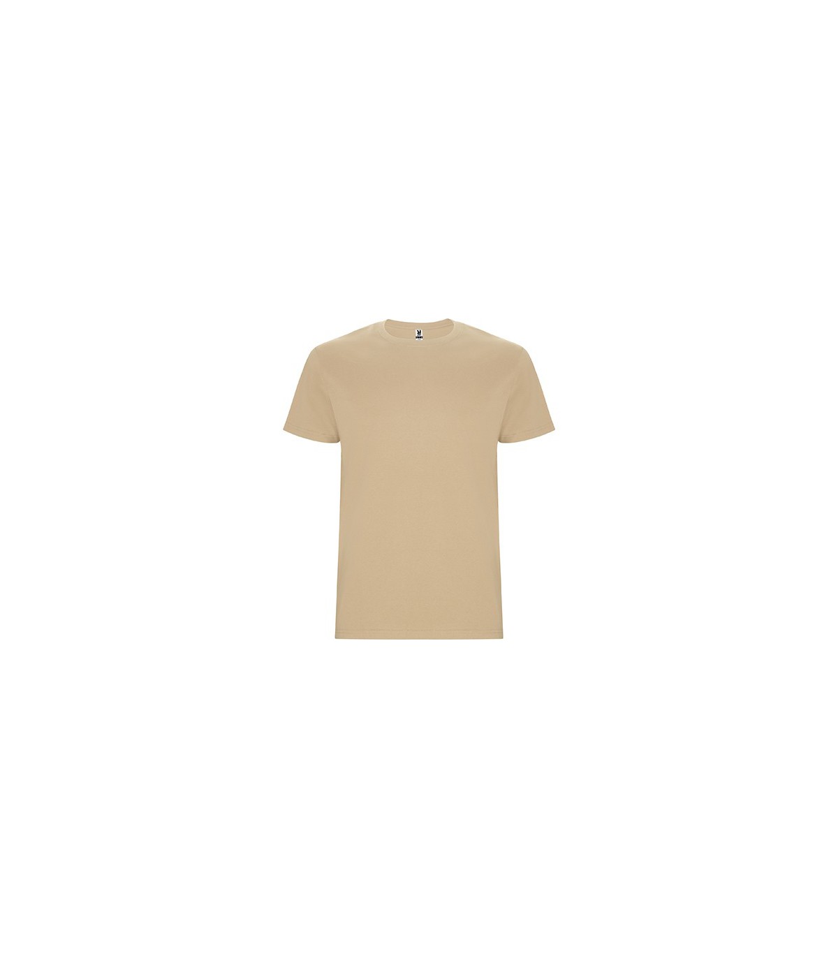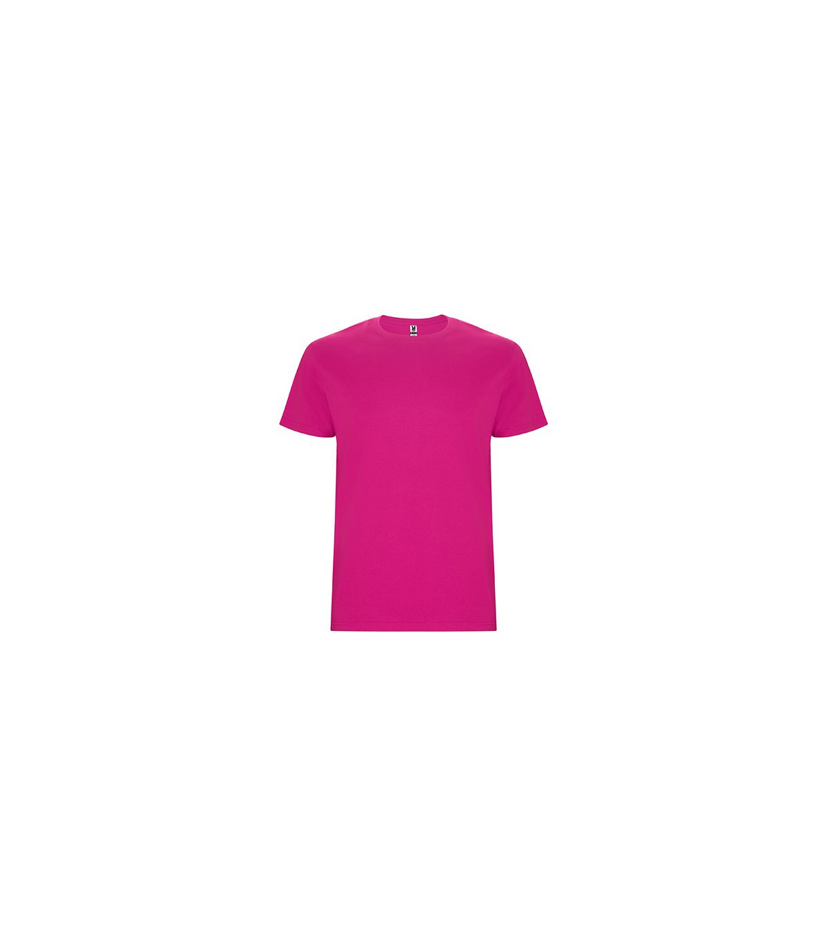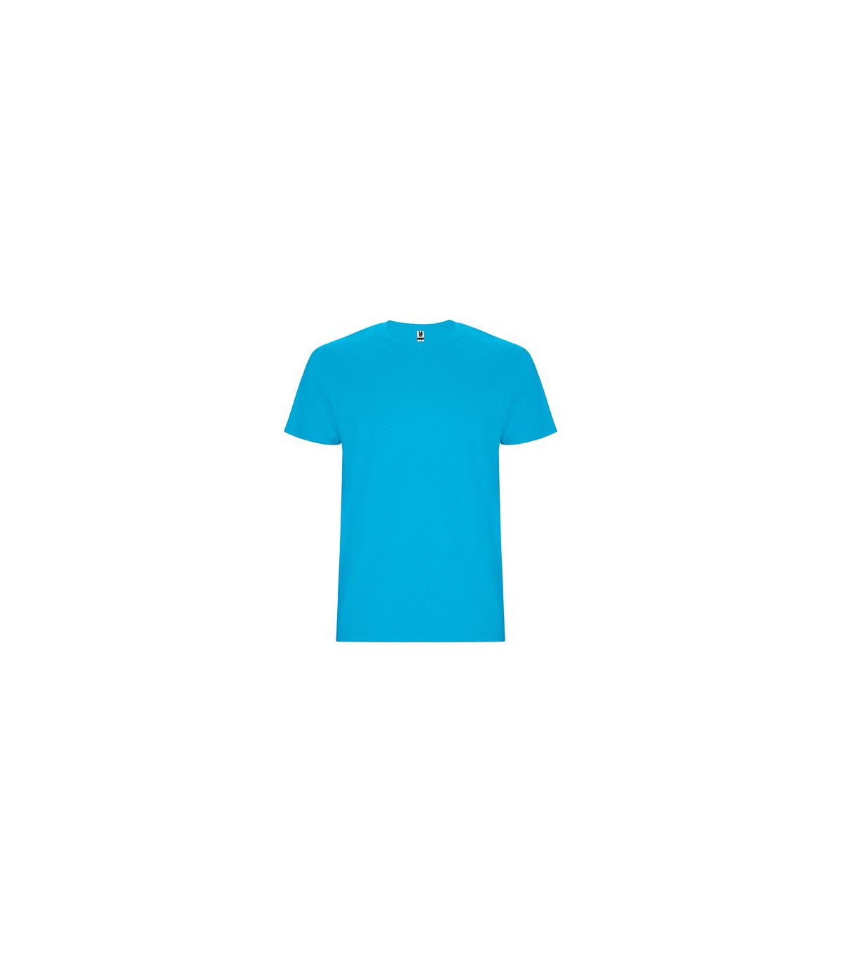 Camiseta tubular de manga corta. Cuello redondo con elastano. Costuras laterales en tallas de niño.
