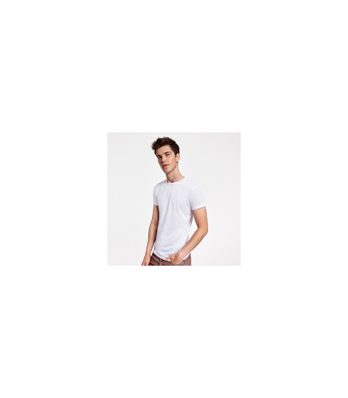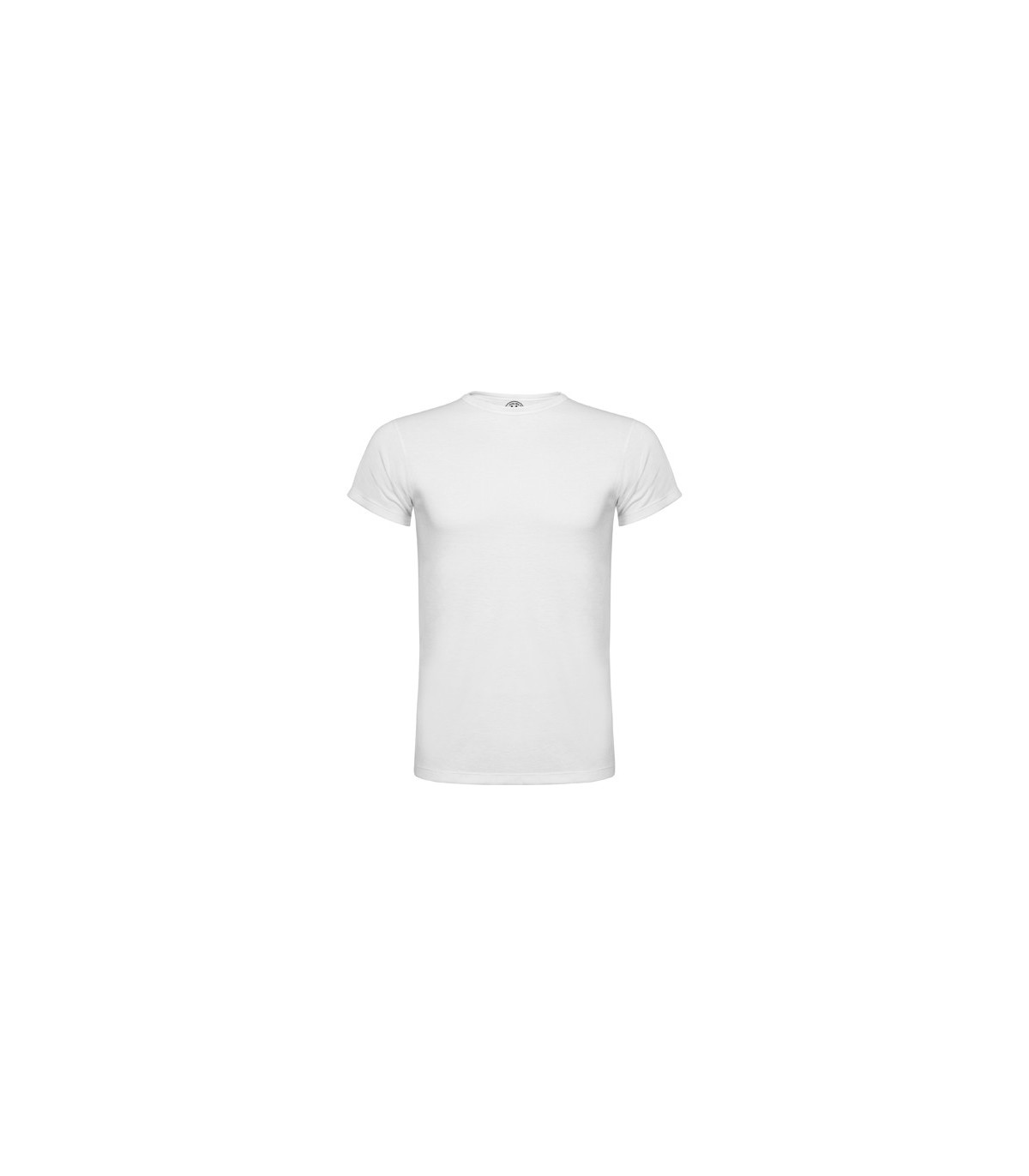 Camiseta de manga corta con cuello redondo viveado en el mismo tejido y costuras laterales. Fabricada en tejido de poliéster con tacto algodón.