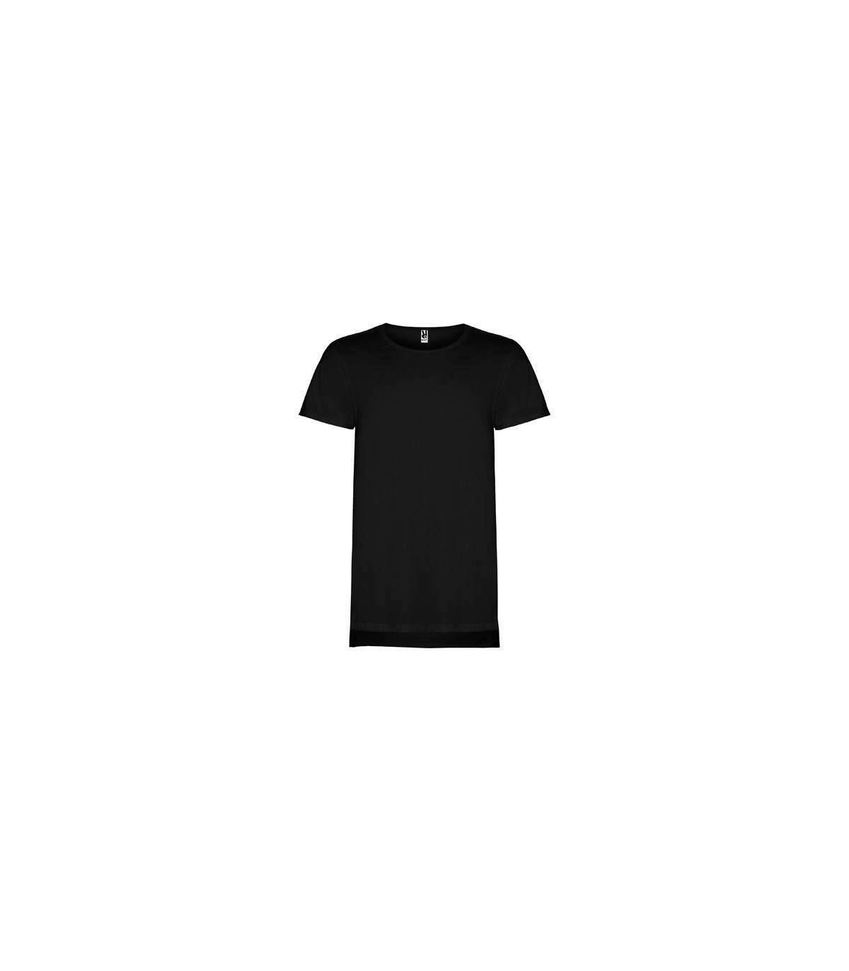 Camiseta unisex de manga corta y talle extra largo, con cuello redondo de dos capas con elastano. Aperturales laterales en el bajo. El patronaje de la espalda es ligeramente más largo que el delantero.